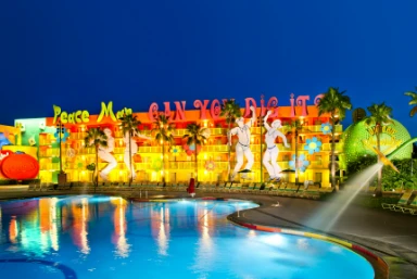 At Disney's Pop Century Resort, you'll find three themed swimming pools. The largest pool, closest to Classic Hall, is the Hippy Dippy Pool, which features flower-shaped water jets and a “groovy vibe”. On select nights, you can watch a movie under the stars here. The second themed pool takes you back to the 1950s - the Bowling Pool, which is shaped like a bowling pin and is a great place to spend an afternoon. The third pool, the Computer Pool, includes a giant floppy disc and keypad, and is reminiscent of the 1990s.
